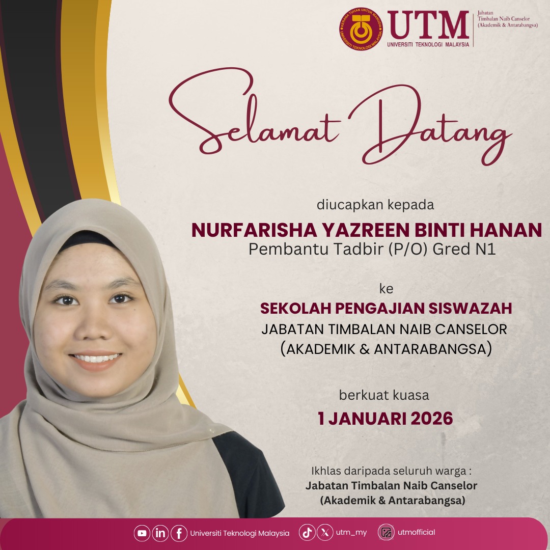 WELCOME TO UNIVERSITI TEKNOLOGI MALAYSIA SEMESTER I 2025/2026