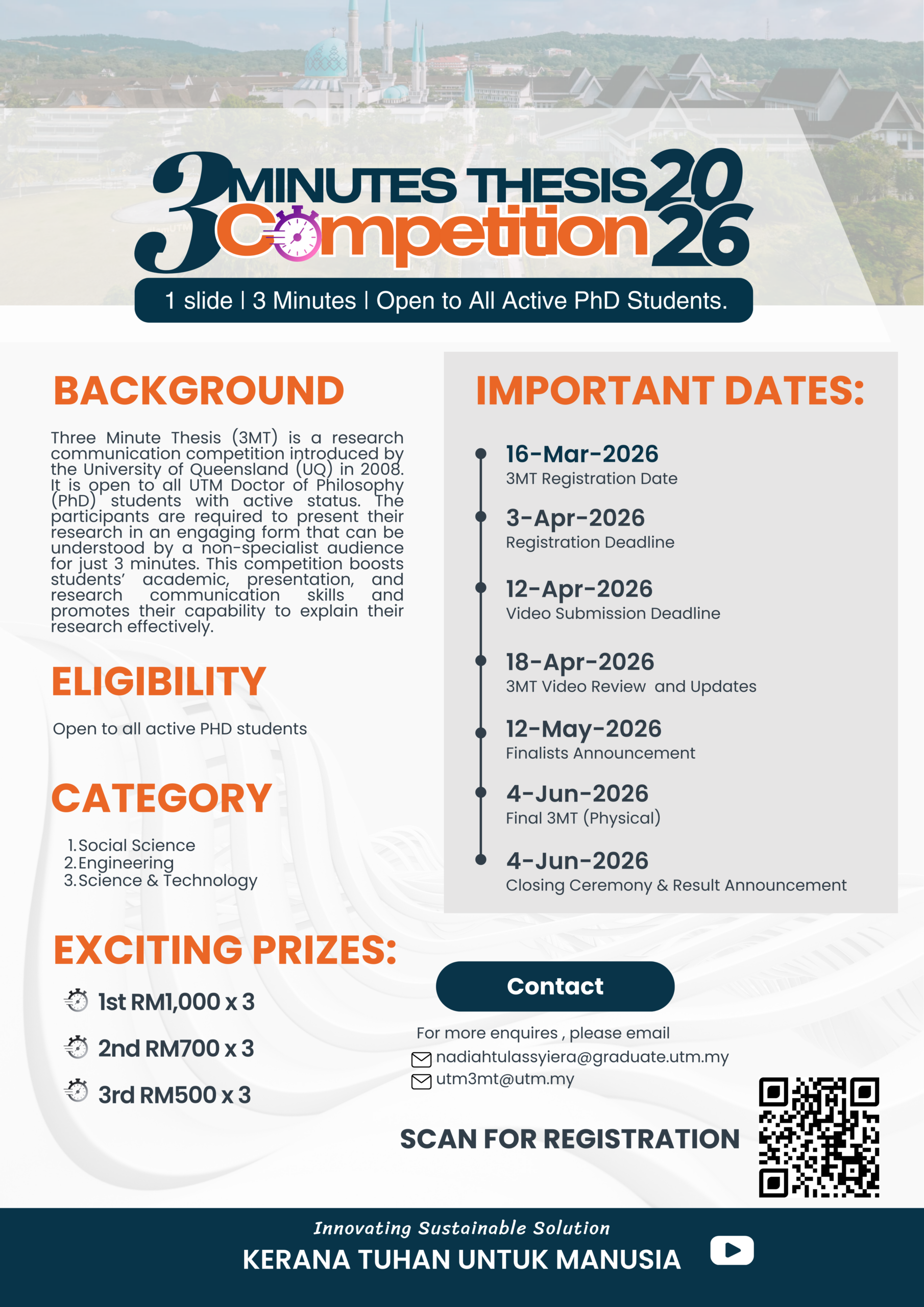 | Video/Slide/Script Submission | 17 March – 12 April 2026 |